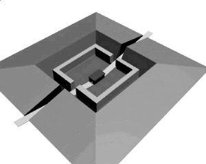 秦始皇陵墓室想象图:据司马迁《史记》记载,秦始皇陵穿三泉而建的地宫充满穷奢豪华的陪葬品,有以水银来表现的百川大海,有防止盗墓的机关弩矢,宫顶装饰天文星宿之象,地上模拟统一后的中国疆域,还有用鲸鱼油做成的长明灯,照亮了整个地宫,经久不熄……两千多年来,深藏地下的秦始皇陵墓室已为中国历史文化中最大的谜团之一。考古专家推测:地宫位于封土堆中部的下方。墓室位于地宫中央,东西长约80米、南北宽约50米,主体尚未完全坍塌。墓室内空间高度15米左右。地宫中存放有大量的水银;墓室中可能存有金属制品。秦始皇陵坐西朝东,故墓门及放置身着金缕玉衣的秦始皇的棺椁,也均面向东方。