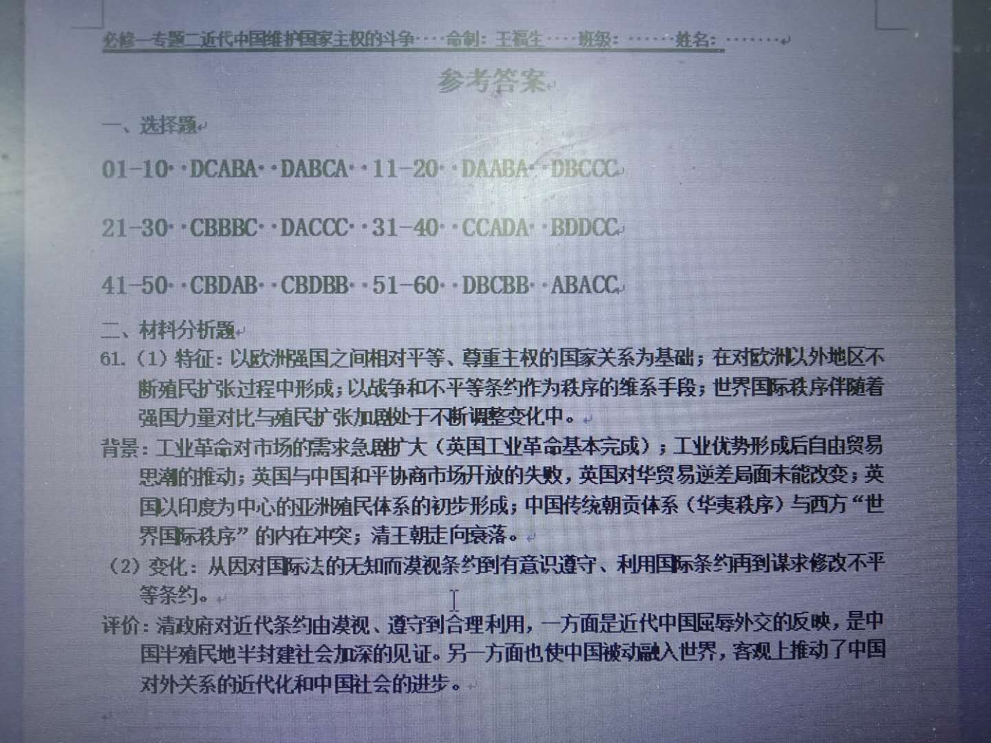 人民版必修一专题二综合练习