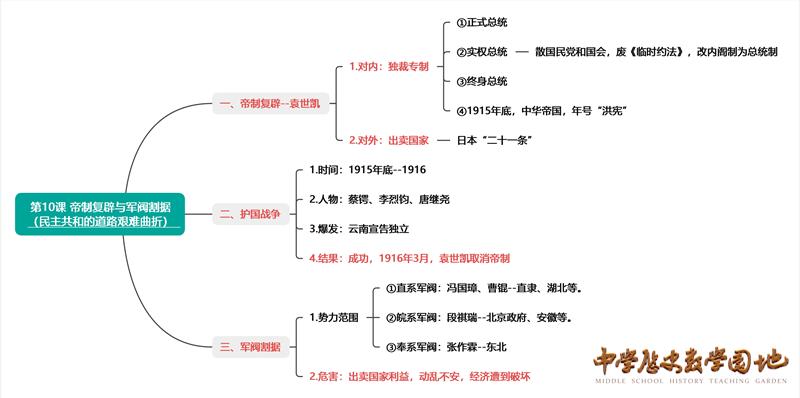 第10课 帝制复辟与军阀割据【思维导图】