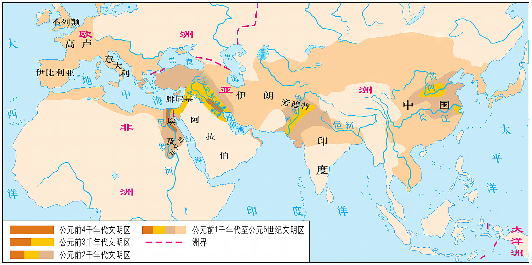 图1世界古代文明分布示意图