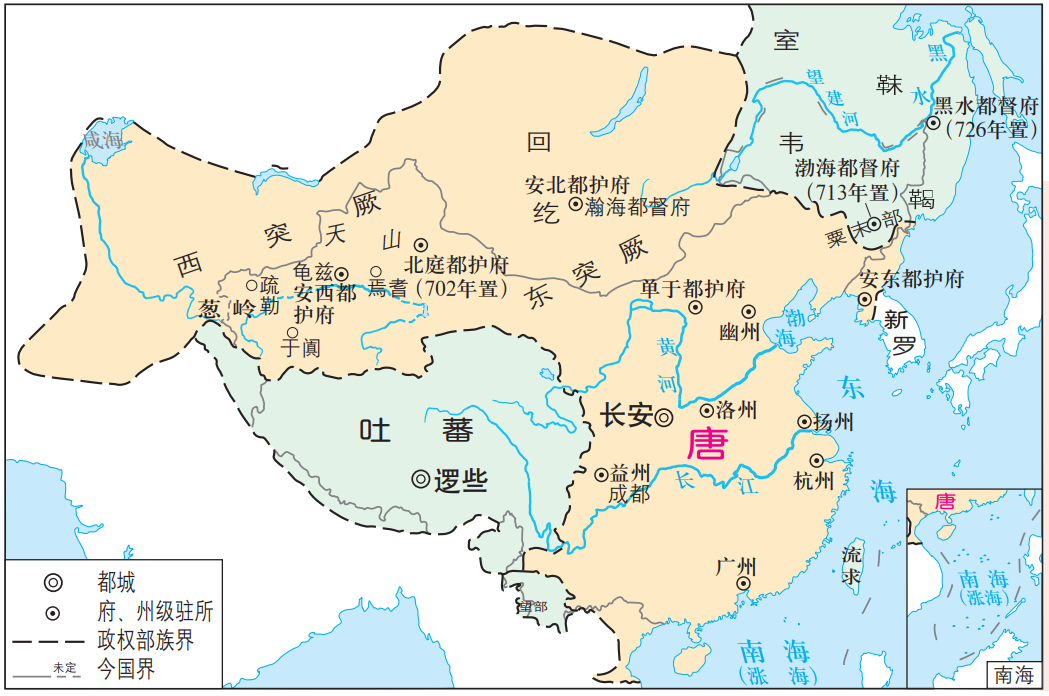 唐前期形势和边疆各族分布图(669年)