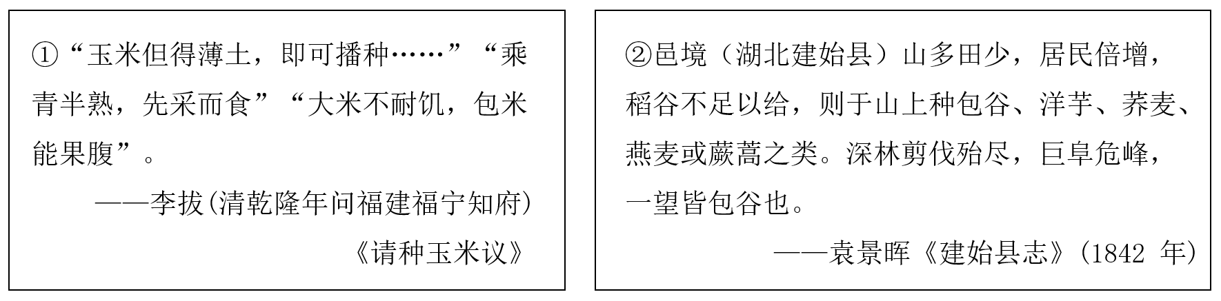 ——表格资料摘编自郭松义《玉米、番薯在中国传播中的一些问题》一文