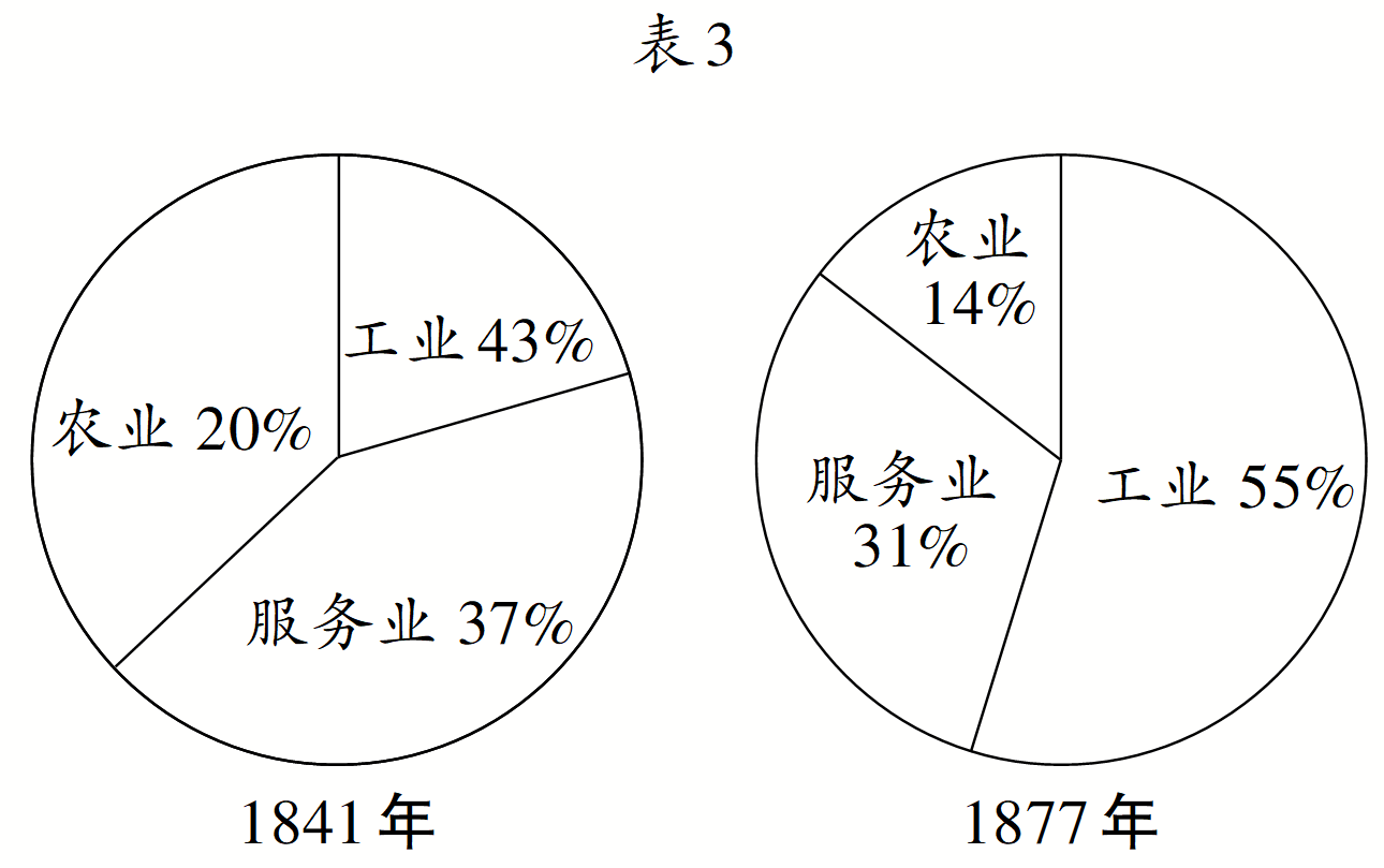 表3是某学习小组整理的英国就业人口结构的部分资料。符合其研究主题的是表3(  )