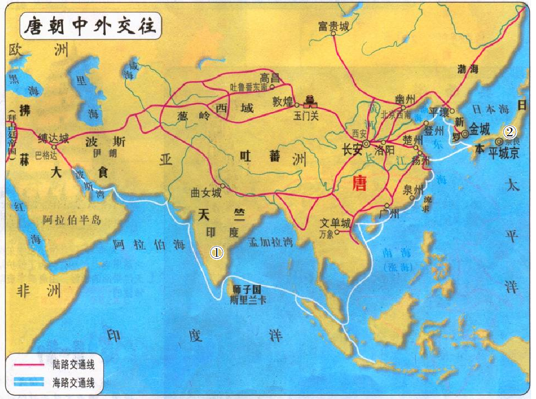 图一 唐朝对外交通路线图 图二 宋代海路交通路线图
